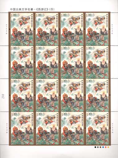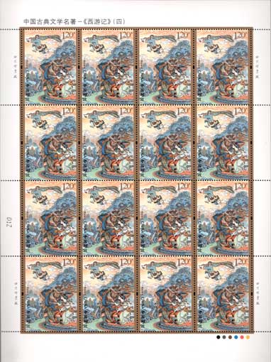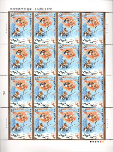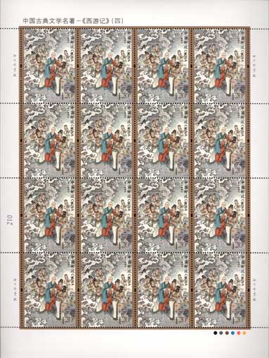 该套邮票为2015年开始发行的《中国古典文学名著——<西游记>》系列邮票第四组,画面生动表现了小说第五十七回至第七十二回中的部分精彩情节。画家运用传统工笔重彩的创作方法,忠实描绘了原著中“真假美猴王”“三调芭蕉扇”“小雷音遭厄”“盘丝洞遇劫”的经典场景,画面故事感强,人物塑造具有个性,色彩古朴细腻。