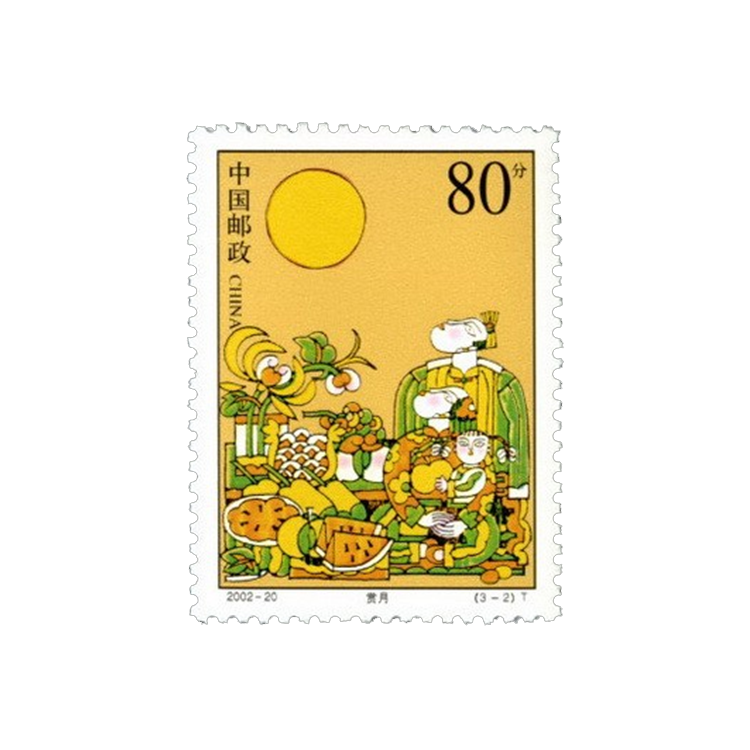 2002年9月21日,为了迎接我国民间隆重的传统节日“中秋节”的到来,国家邮政局发行了《中秋节》特种邮票,全套3枚,同时发行小版张1套1版。