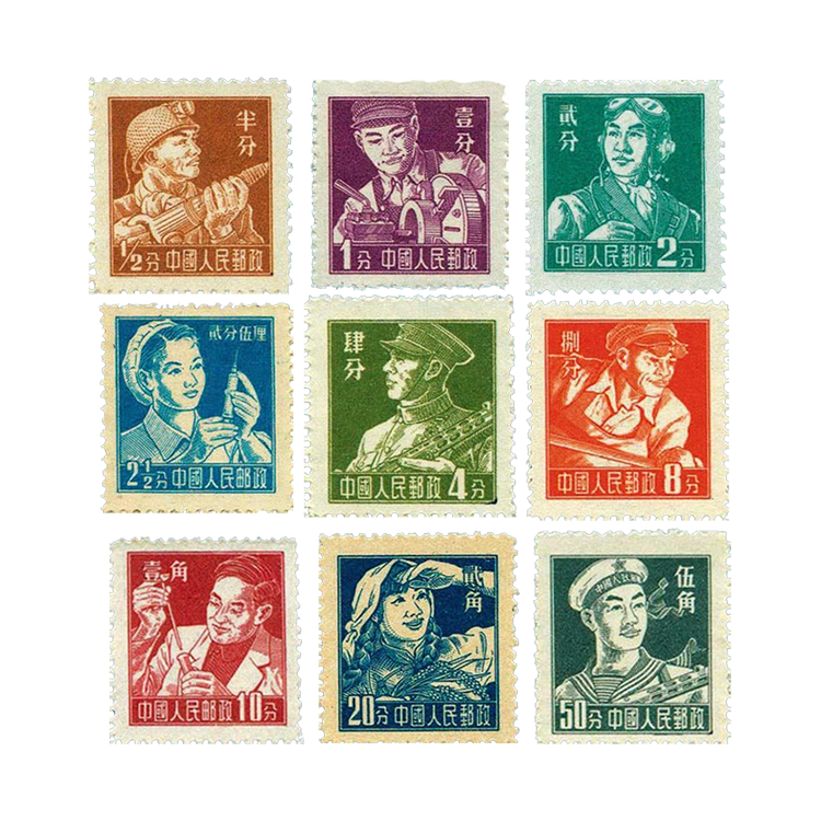 1955年7月16日,邮电部发行的邮票,1套9枚。