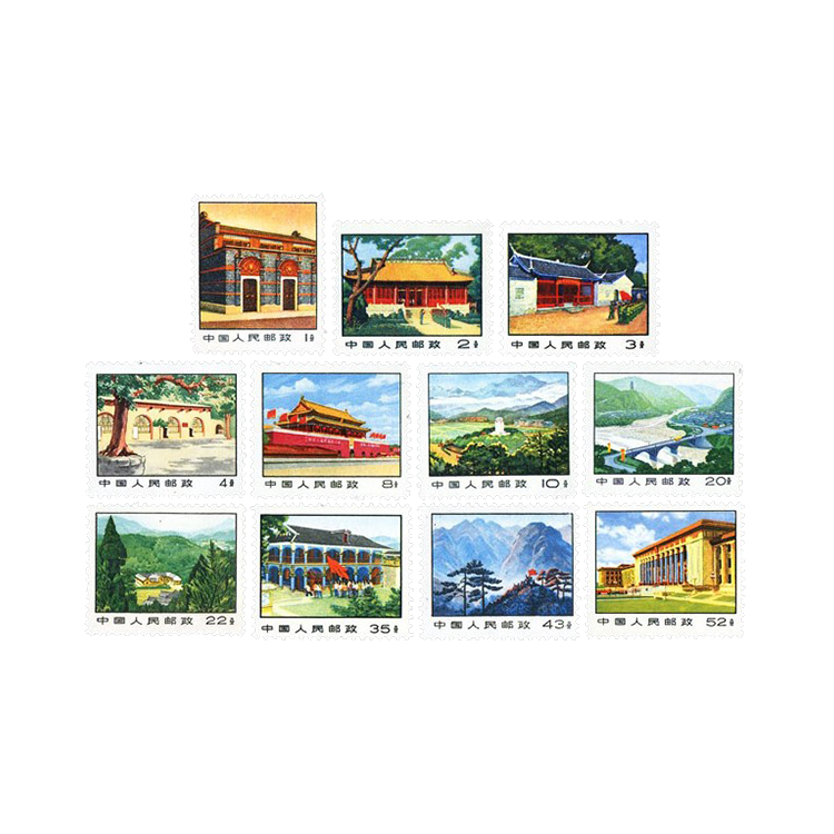 图11-4为“韶山”,韶山位于湖南湘潭县城西40公里处,票面为松竹掩映下的毛泽东故居。