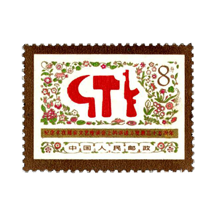 1977年5月23日,正值毛泽东同志《在延安文艺座谈会上的讲话》发表35周年纪念日,中华人民共和国邮电部发行了这套《纪念(在延安文艺座谈会上的讲话)发表三十五周年》纪念邮票,全套2枚。