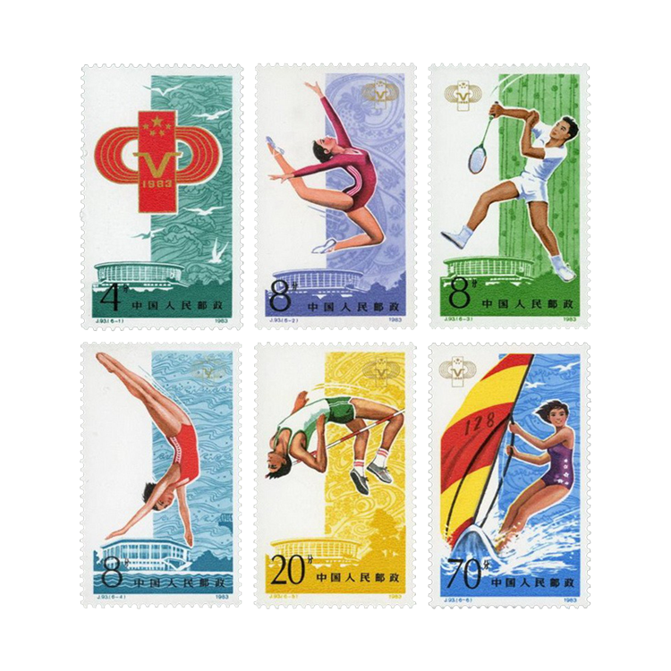1983年9月16日,为祝贺第五届全运会举行,邮电部发行了《中华人民共和国第五届运动会》纪念邮票,全套6枚。