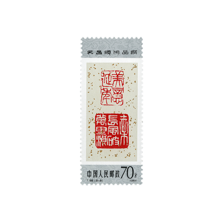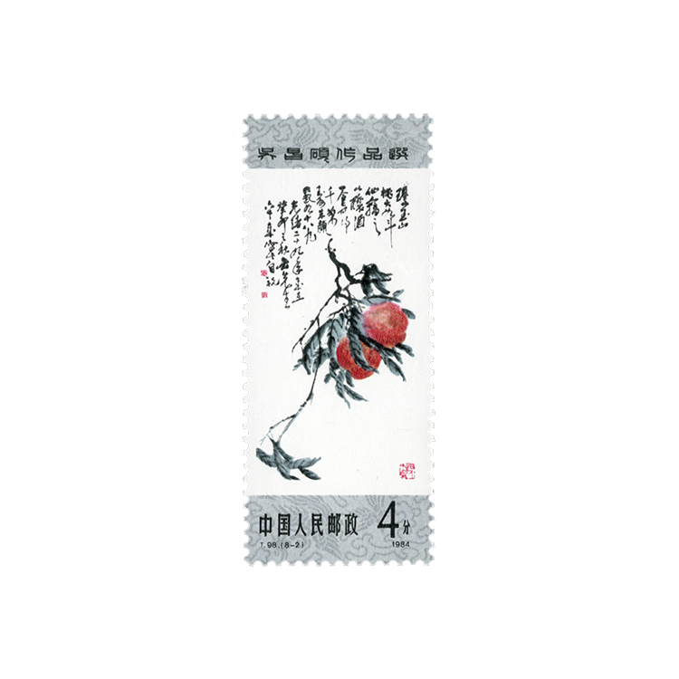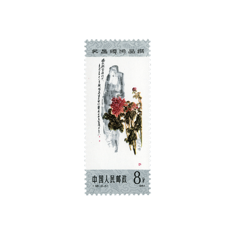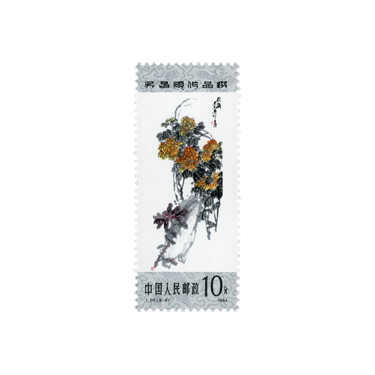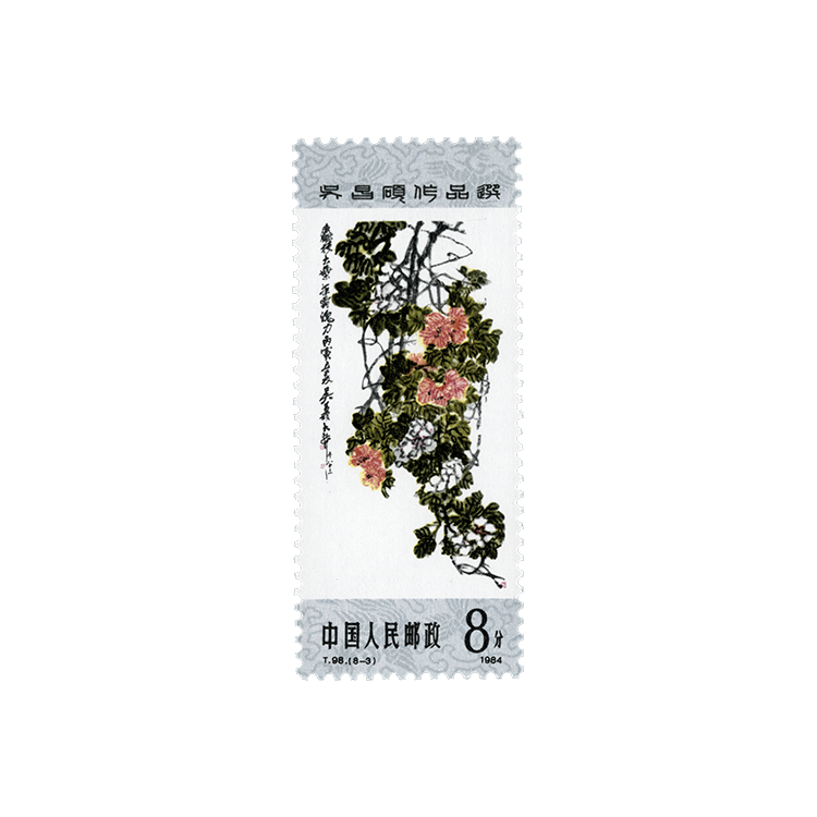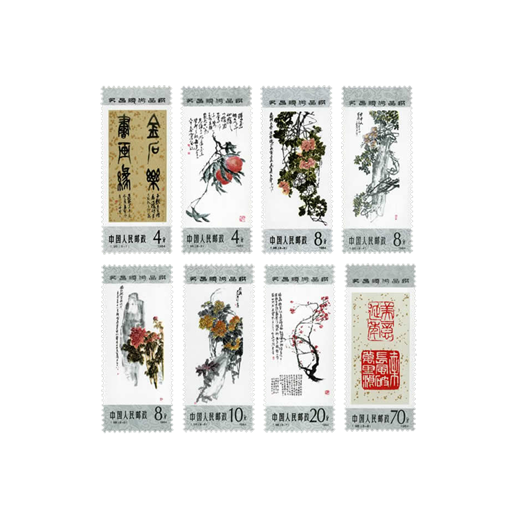 本套邮票是为了纪念我国著名书画家吴昌硕,选取了吴昌硕的书画作品共八件作为邮票内容。