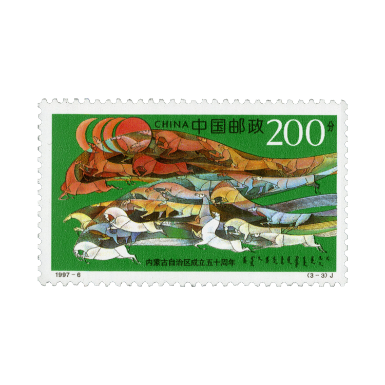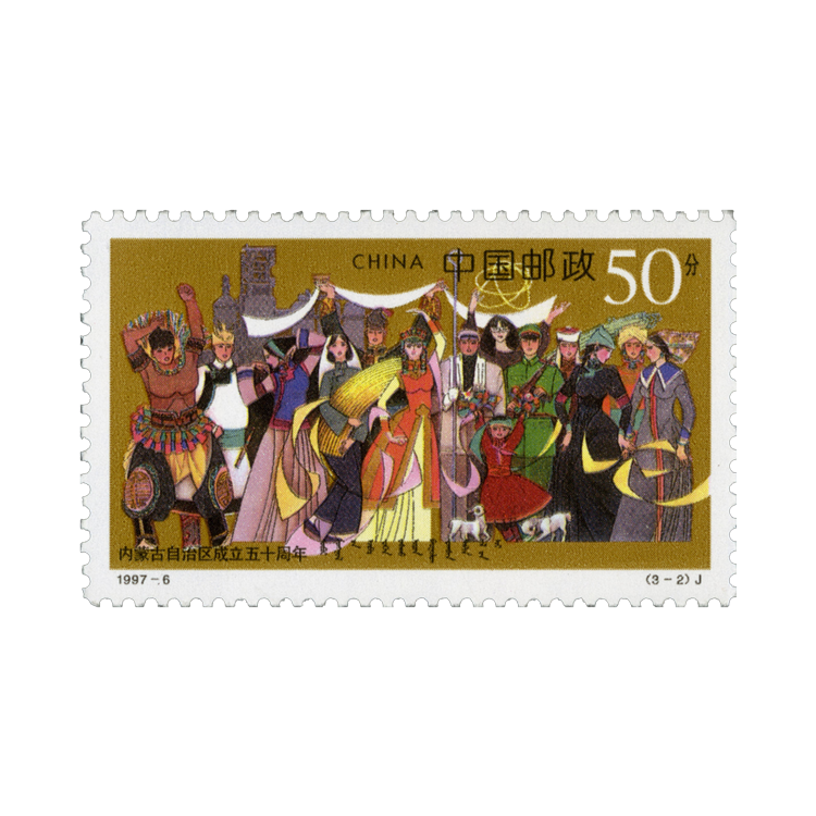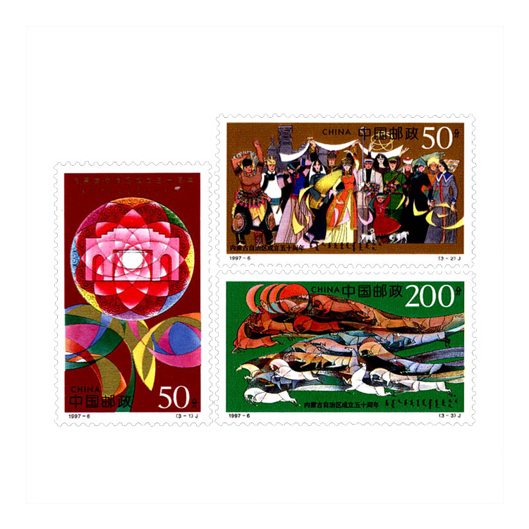 1997年5月1日,为庆祝内蒙古自治区成立50周年,邮电部发行了《内蒙古自治区成立五十周年》纪念邮票,全套3枚。