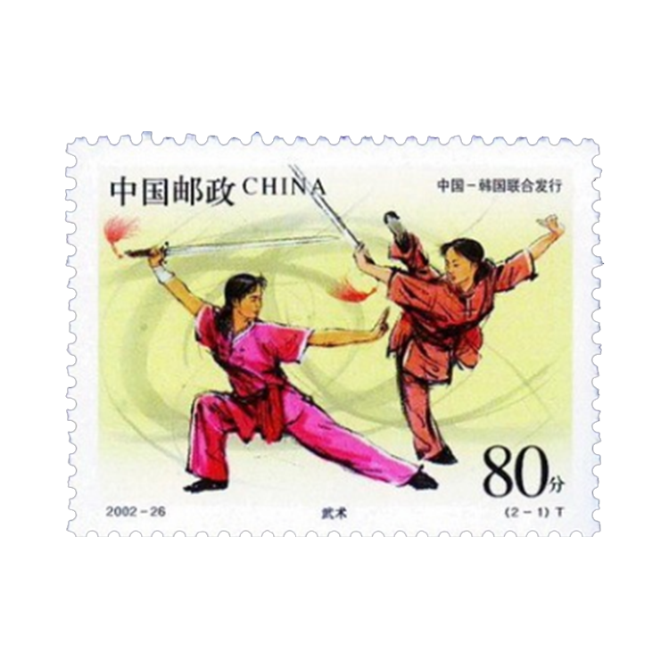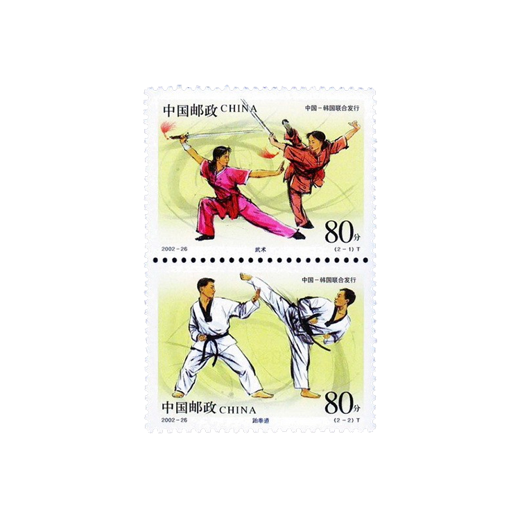 2002年11月20日,为展示两国历史悠久的民间传统体育项目,国家邮政局和大韩民国邮政联合发行了《武术与跆拳道》特种邮票,全套2枚。