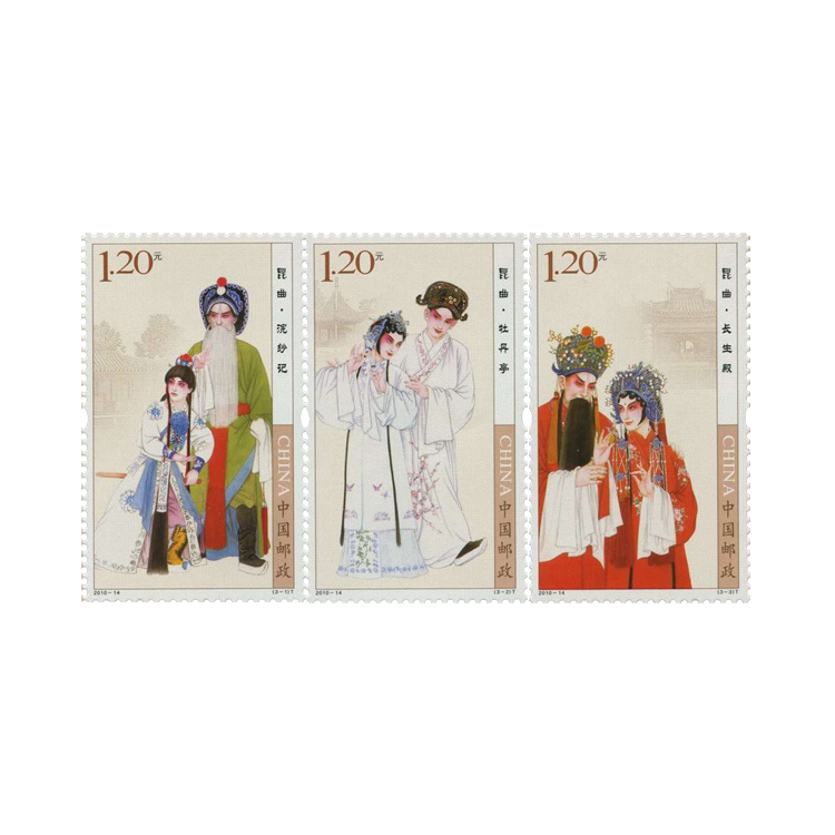 中国邮政定于2010年6月12日发行《昆曲》特种邮票,全套3枚。