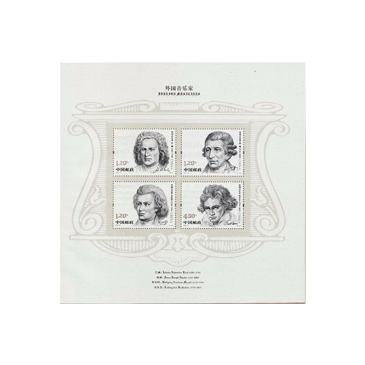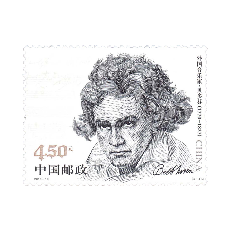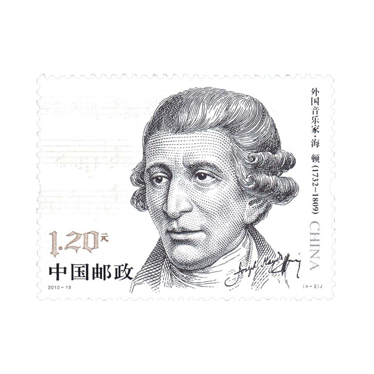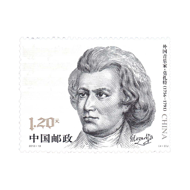 中国邮政2010年7月25日发行《外国音乐家》纪念邮票,1套4枚。