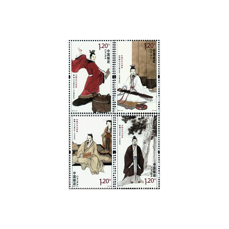 中国邮政定于2013年9月15日发行《中国古代文学家(三)》纪念邮票1套4枚。