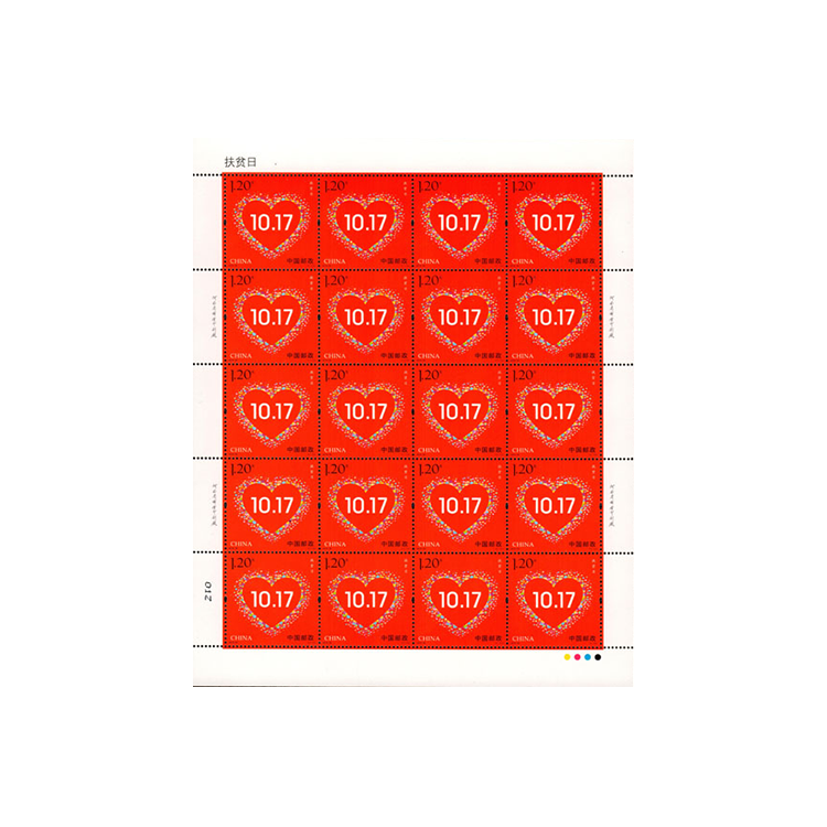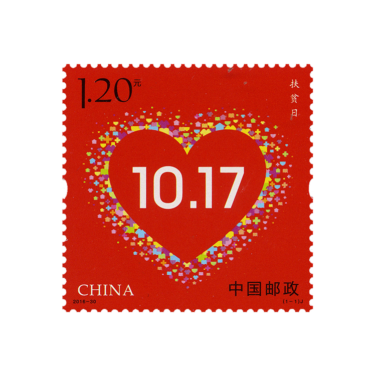 • 中国邮政定于2016年10月17日发行《扶贫日》纪念邮票1套1枚。