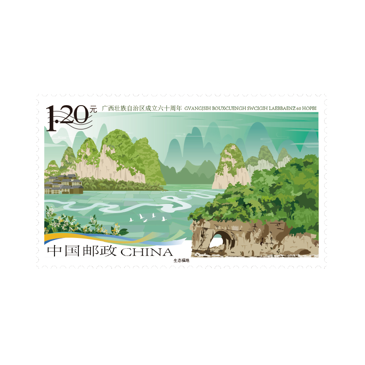 中国邮政于2018年10月18日发行《广西壮族自治区成立六十周年》纪念邮票,一套3枚。