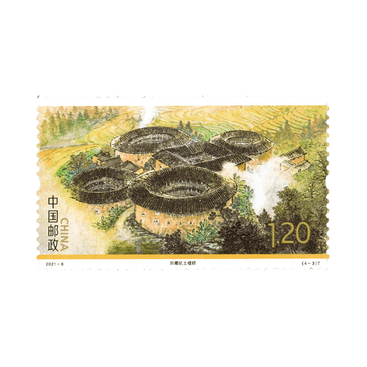 中国邮政定于2021年5月19日发行《福建土楼》特种邮票一套4枚,全套邮票面值为4.80元,邮票计划发行数量710万套,版式二计划发行数量95万版。