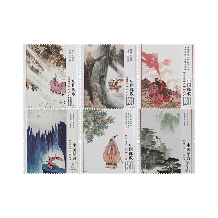 中国邮政定于 2025 年 5 月 31 日发行《楚辞》特种邮票 1 套6 枚。