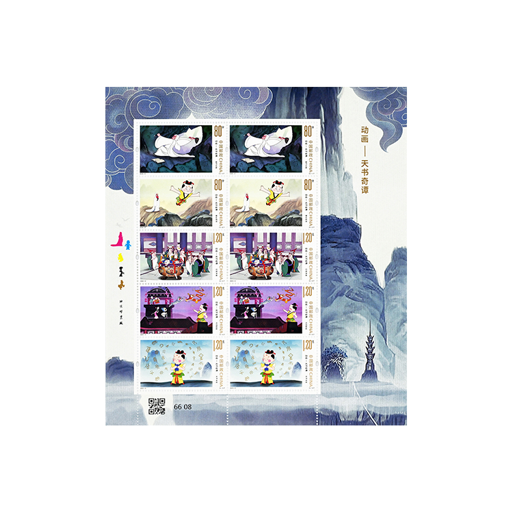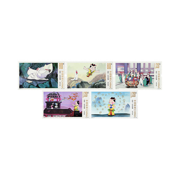 中国邮政拟定于2025年6月1日发行《动画——天书奇谭》特种邮票1套5枚,图案名称分别为凿书云梦、蛋生拜师、巧用宝盆、大战狐妖、天书永传。