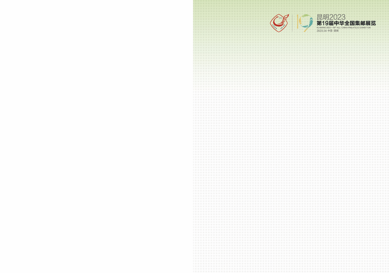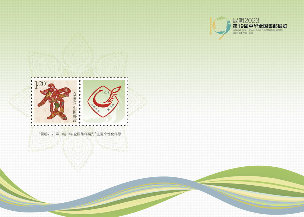 中国集邮有限公司于2023年4月27日发行《昆明2023第19届中华全国集邮展览》集邮护照,该产品邮票页为1枚版“贺”主图个性化邮票特殊版式印制,为集邮爱好者收集各省邮戳提供载体。同时购买集邮护照的用户,通过邮票百科扫描护照的二维码可领取隐藏电子纪念邮戳,凭截图在邮展现场总公司展厅可加盖隐藏版实物纪念邮戳1枚。