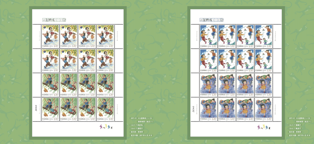 儿童游戏(一)版式一、祝福祖国套票、孔雀 套票、小型张;中国梦-人民幸福 小全张、腾冲地热火山套票、香格里拉 套票、小型张。