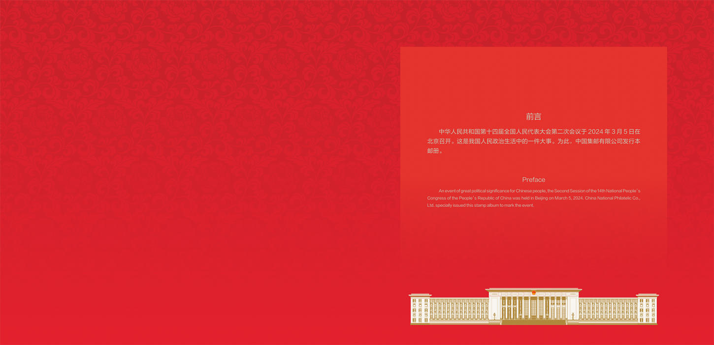 中国集邮有限公司定于2024年3月5日发行《中华人民共和国第十四届全国人民代表大会第二次会议》纪念册1套。
