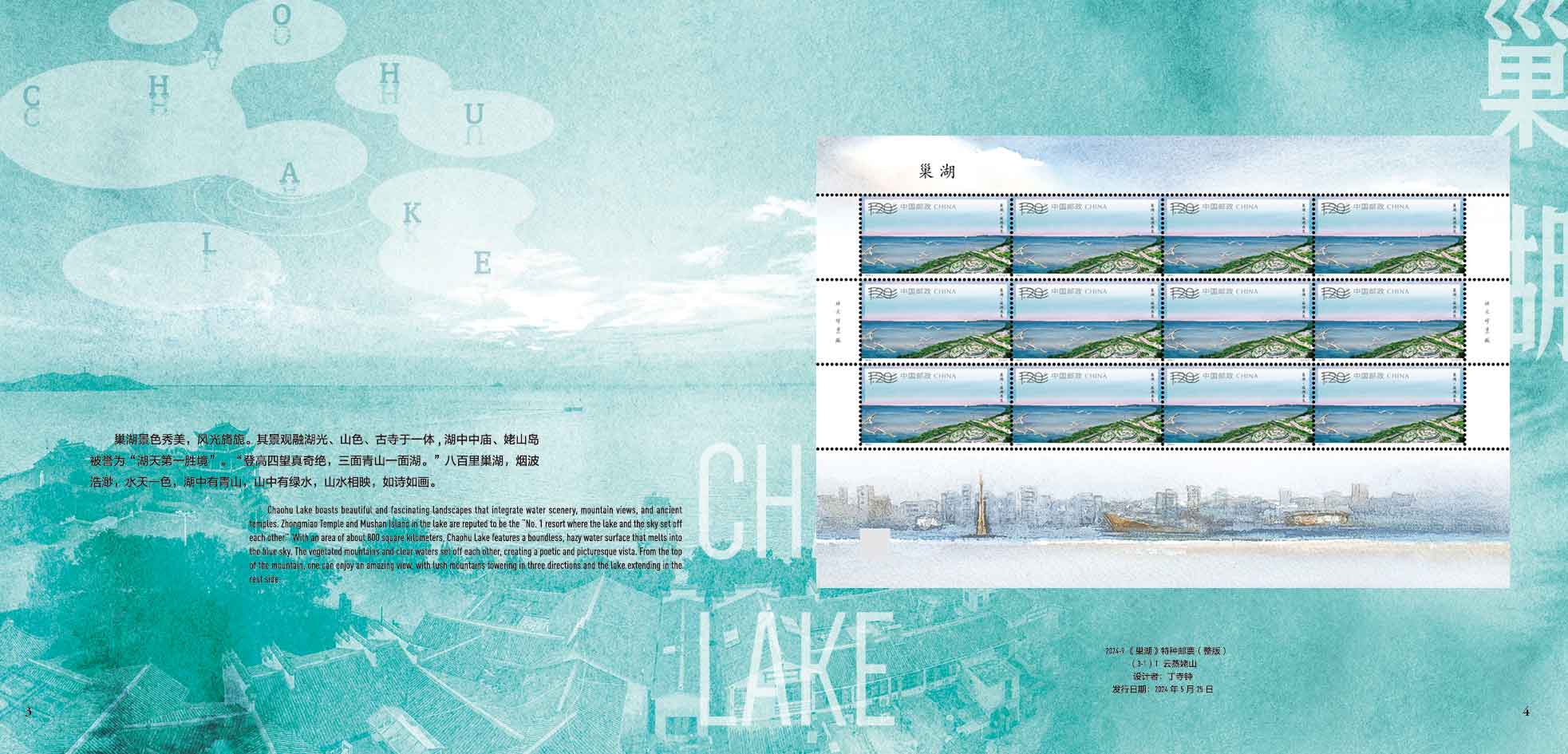 中国集邮有限公司于2024年5月25日发行《巢湖》版票册。