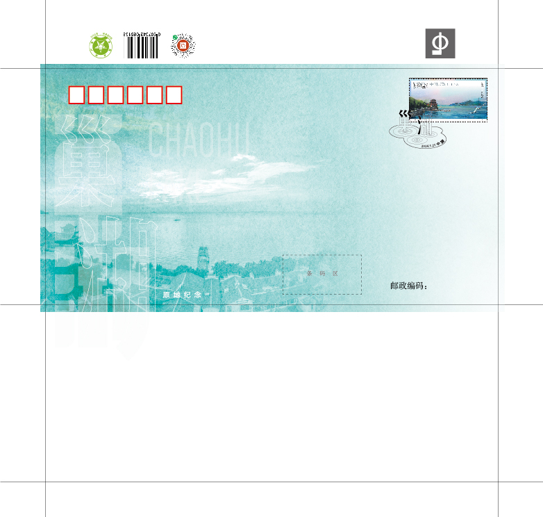 《佳邮·巢湖》风琴折内配巢湖原地纪念封3枚,封上印有“中庙”、“十八联圩”、“大湖名城”三枚原地风景戳,与巢湖邮票遥相呼应,同时配有“环湖十二镇”12枚原地日戳邮戳卡一枚。