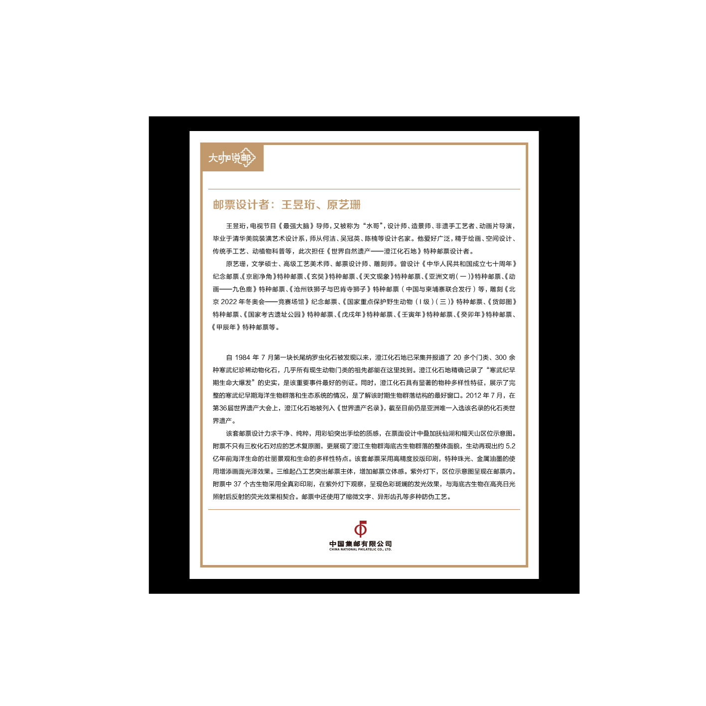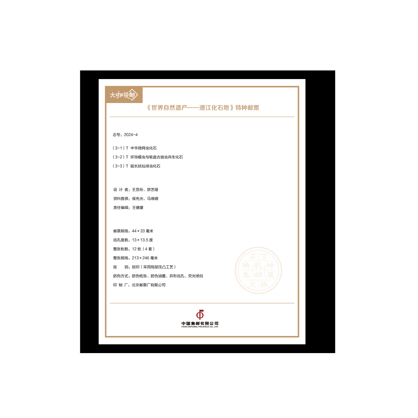 中国集邮有限公司于2024年4月19日发行《世界自然遗产——澄江化石地》整版票珍藏(大咖说邮系列)。