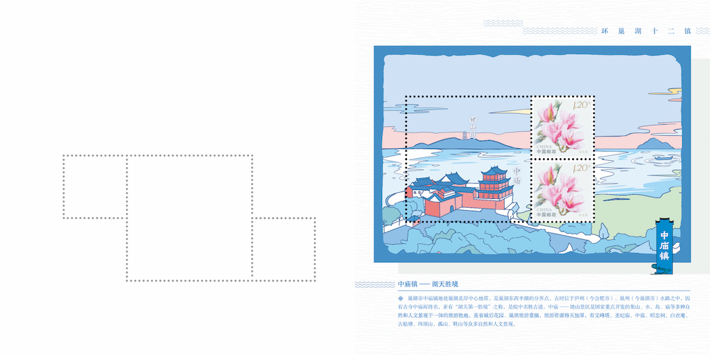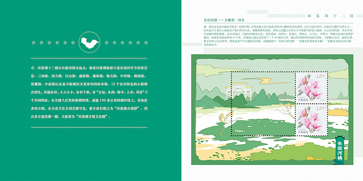 中国集邮有限公司于2024年5月25日发行《镇美巢湖》环巢湖十二镇个性化邮票本册一款。