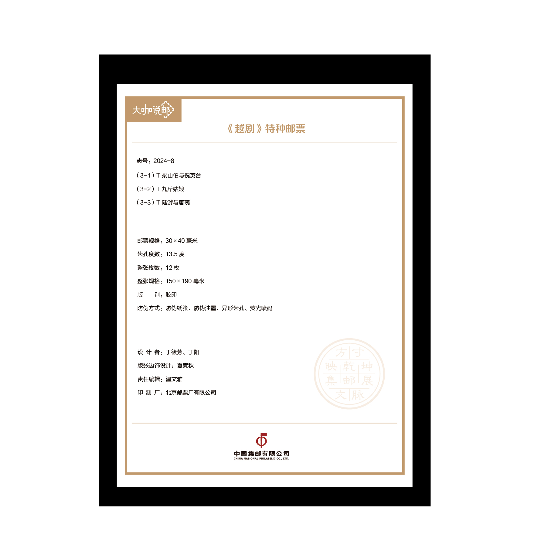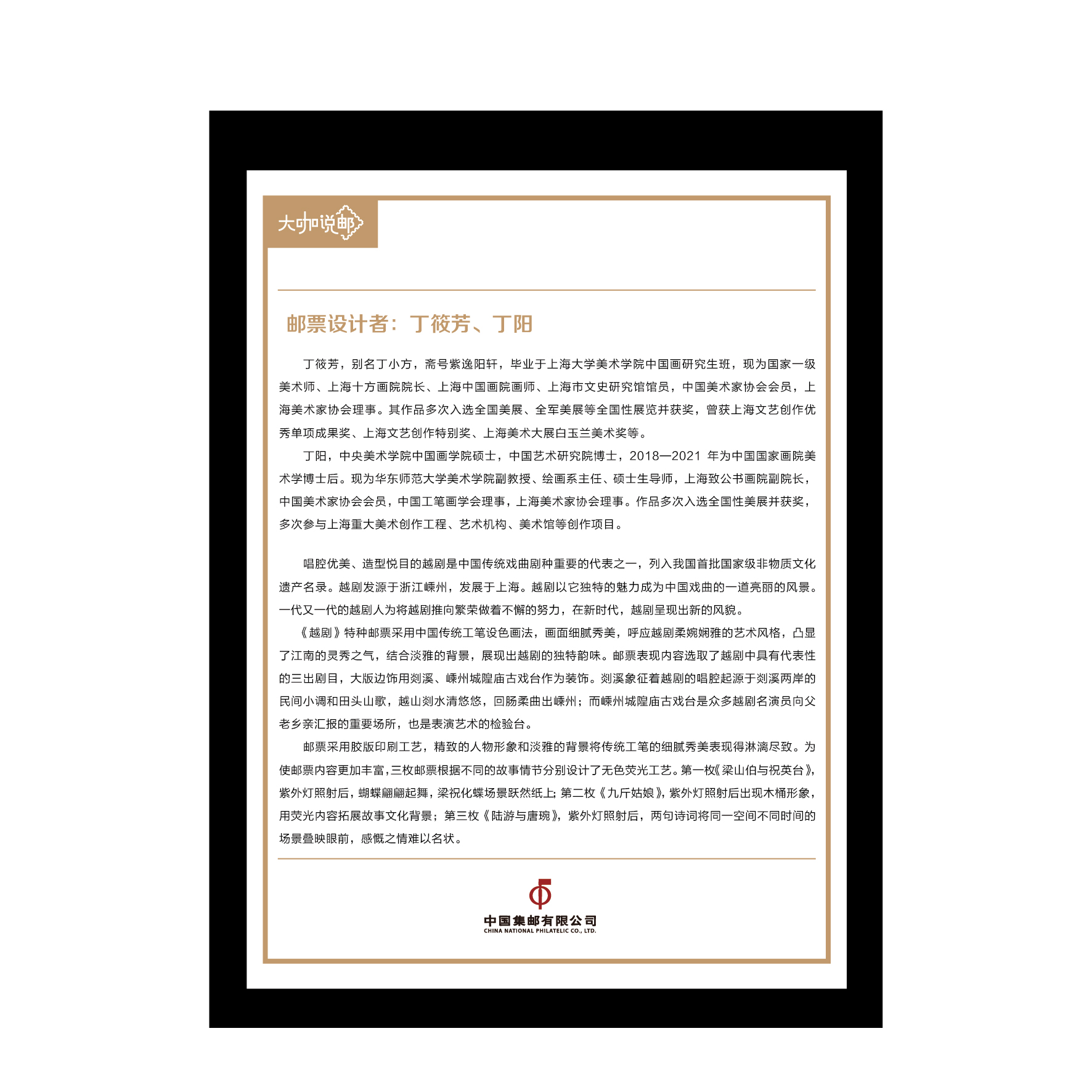 中国集邮有限公司于2024年6月20日发行《越剧》整版票珍藏(大咖说邮系列)。