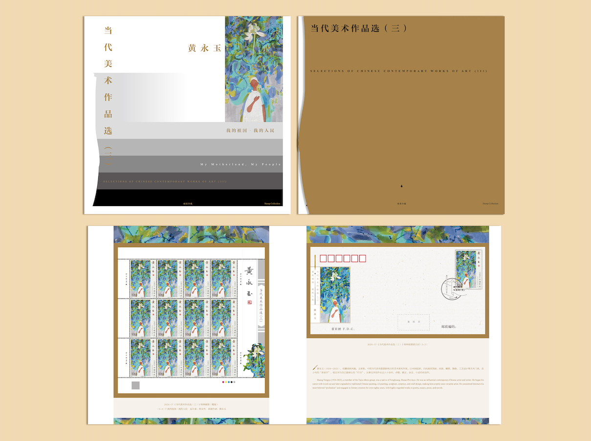 中国集邮有限公司于2024年8月9日发行《当代美术作品选(三)》整版票珍藏。产品含一套3枚邮折。