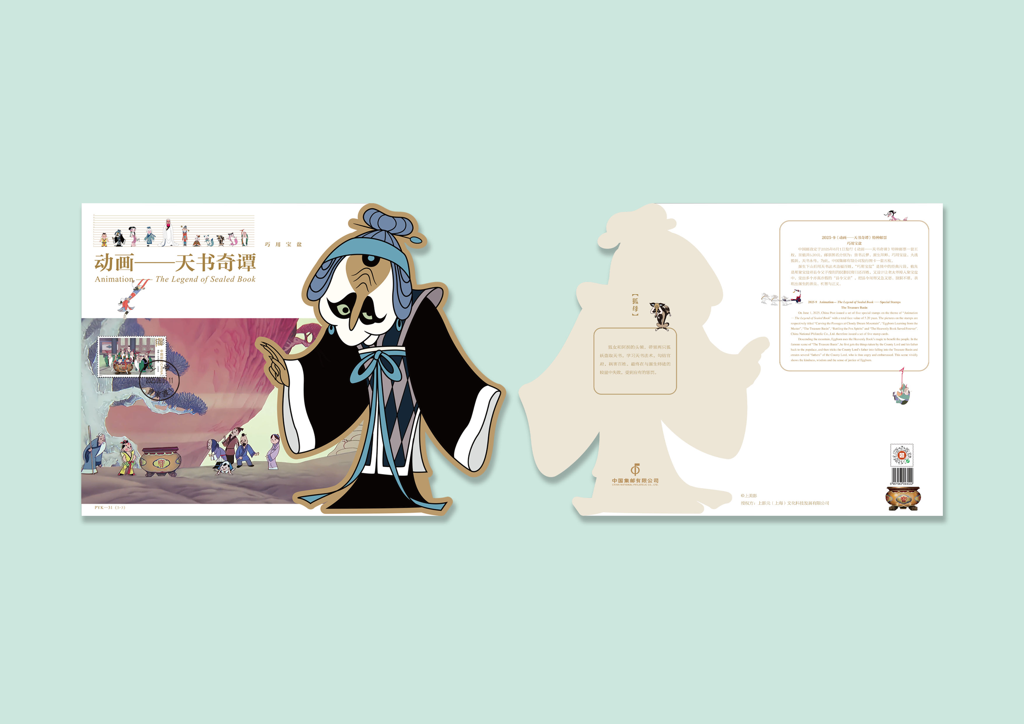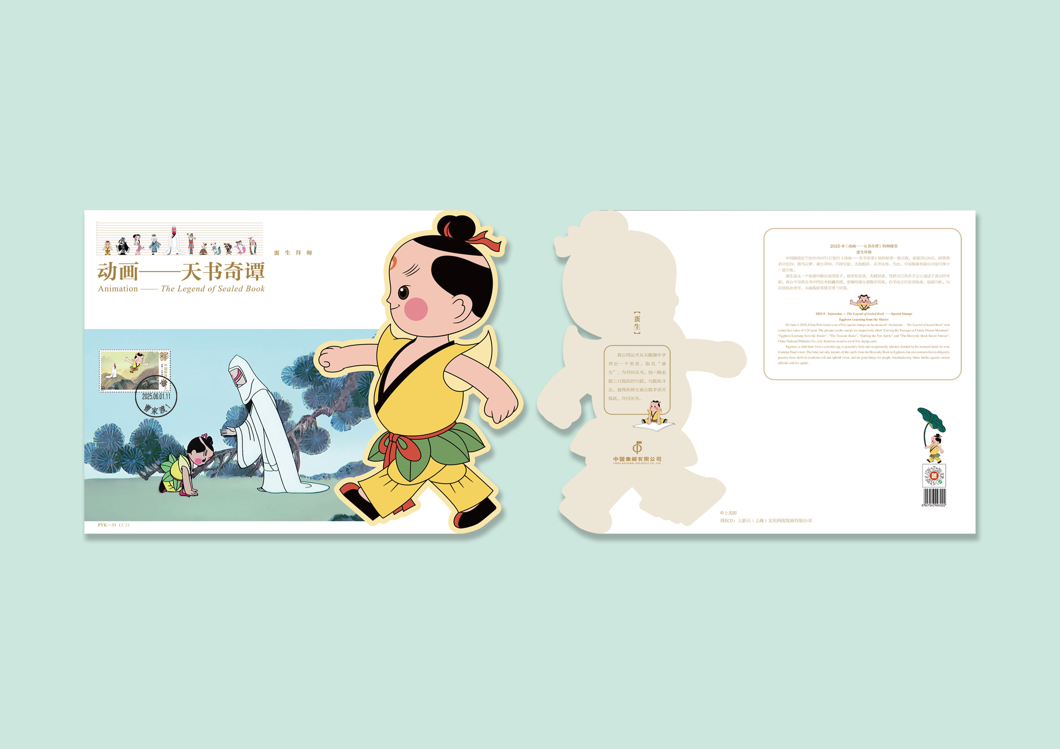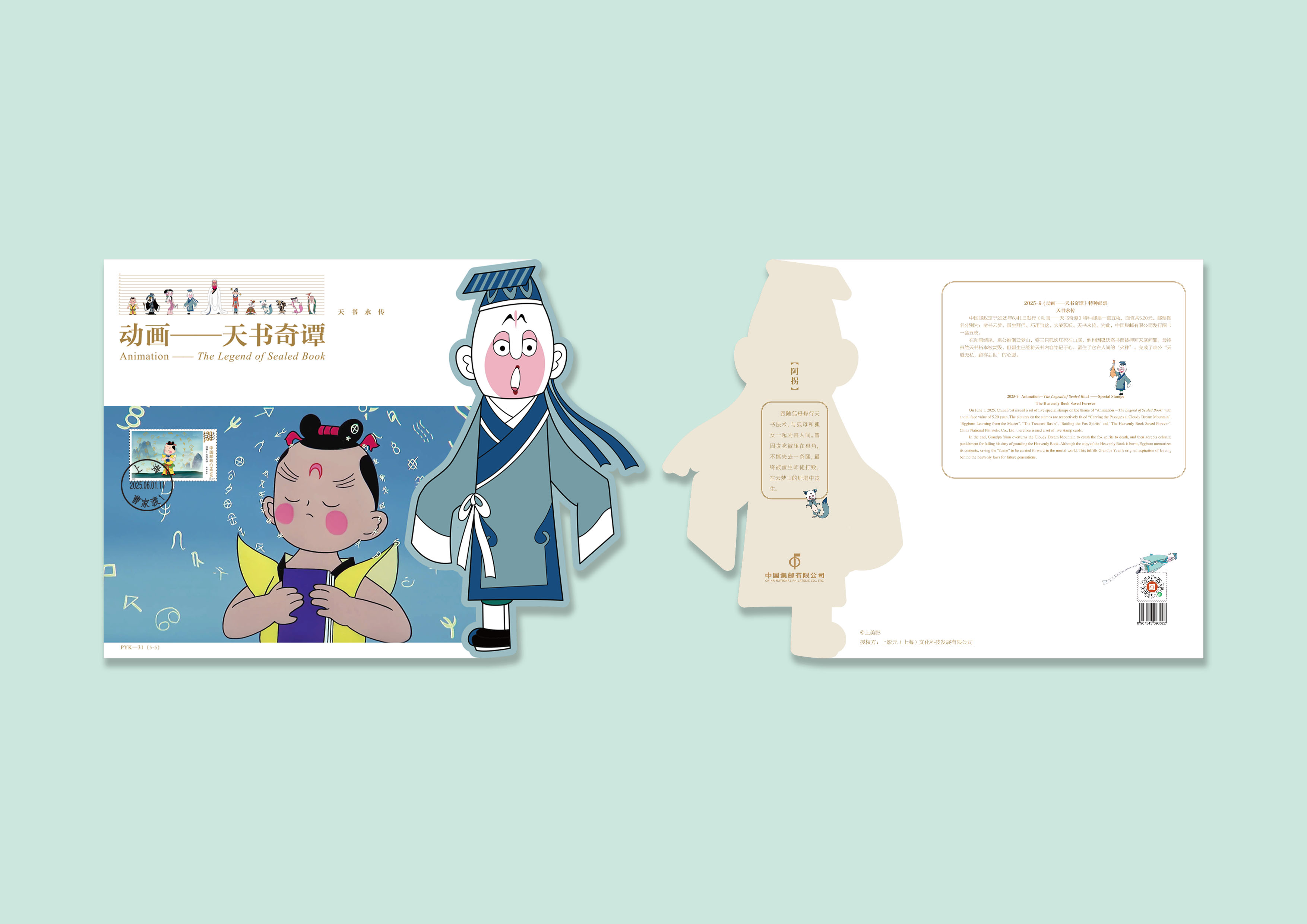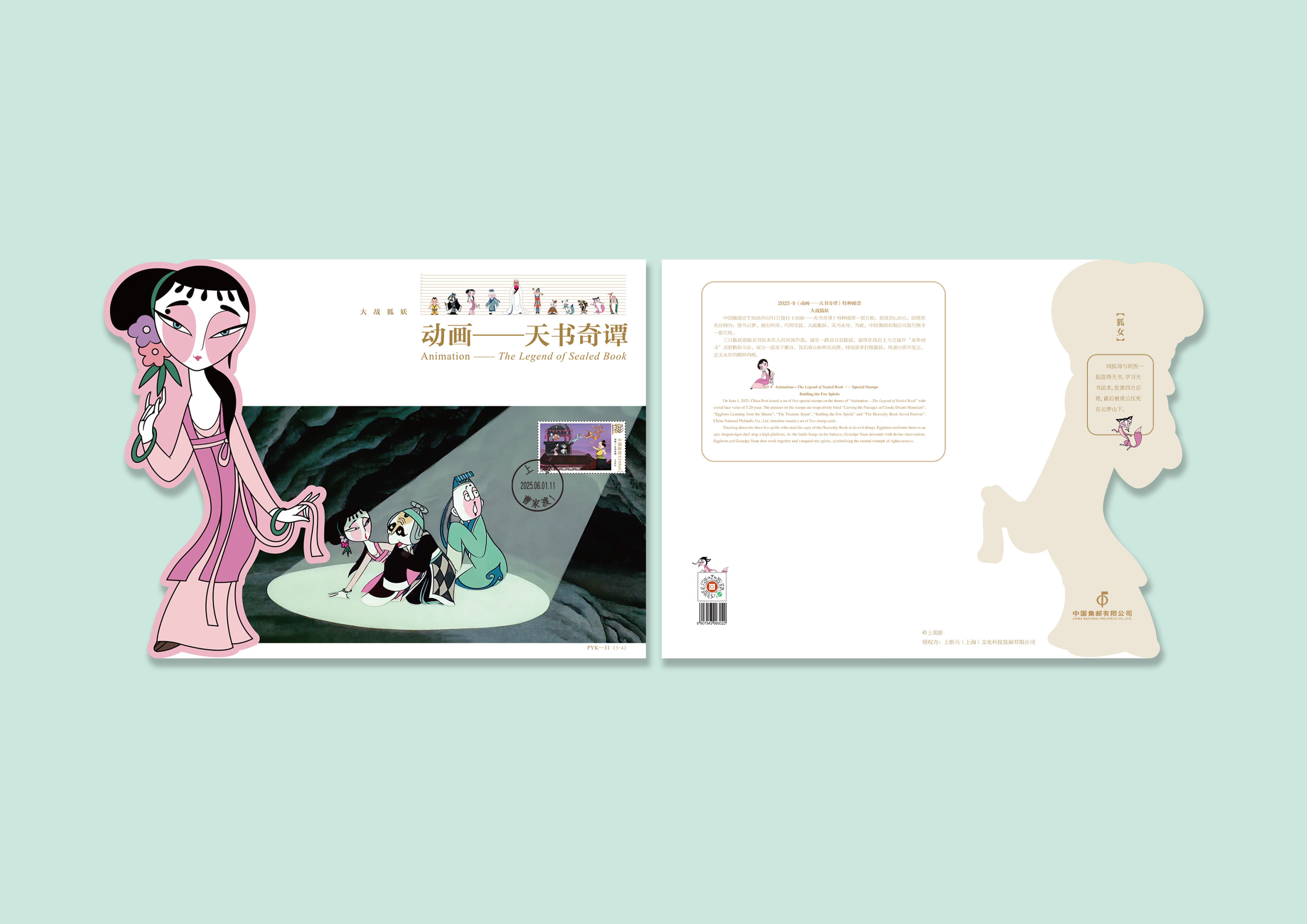 中国集邮有限公司于2025年6月1日发行《动画——天书奇谭》图卡一套5枚,贴《动画——天书奇谭》特种邮票套票,销原地戳。