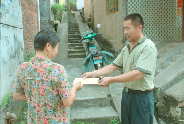 陈久富,今年45岁,一名普通的退伍军人,中共党员。现为赣州市定南县分公司投递班班长,中共党员。自2009年参加邮政工作,一直扎根在邮政投递岗位上,始终脚踏实地,兢兢业业,吃苦耐劳,扎实工作,逐步成长为一名深受客户喜爱的绿衣使者。在近十年的工作中,他用实际行动践行了“人民邮政为人民”的服务宗旨,把百年邮政的优质服务传递到千家万户,在定南乃至赣州邮政投递队伍中树立起一面旗子,连续多年被评为“先进工作者”,2014年评为“全省优秀投递服务明星”,2015年被评为“赣州市劳动模范”,2018年7月被评为“2014-2017年度江西省邮政企业劳动模范”荣誉称号。