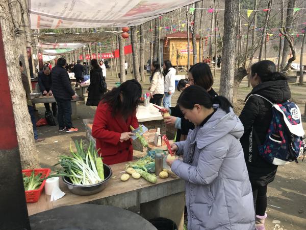 厨艺大赛分三个小组,后台支撑管理组、经营发展组和支局团队组。3月7日一早,全体女职工来到了丹江口桃花岛,按照现场分组,每组队员在队长的带领下,拿出提前准备好的鸡肉鱼蛋、油盐酱醋、零食水果便立刻投入到了紧张有序的准备工作中,生火的生火、淘米的淘米、洗菜的洗菜,琳琅满目,应接不暇,忙得不亦乐乎。