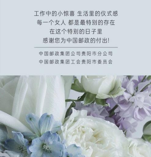 为庆祝“三·八”国际劳动妇女节,贵阳邮政分公司党委和贵阳邮政工会本着尊重、关爱女职工,激发女职工自尊、自强、自信、自立,用实力创造自己的完美生活。鼓励她们立足岗位、建功立业、宣传美德、传承文明,进一步凝聚女职工的积极性和创造性,贵阳邮政分公司党委和贵阳邮政工会为各条战线的每位女职工献上一束鲜花,让各位女职工感受到企业关怀的同时希望广大女职工施展才华,发挥优势,为企业的发展献力献策。