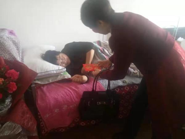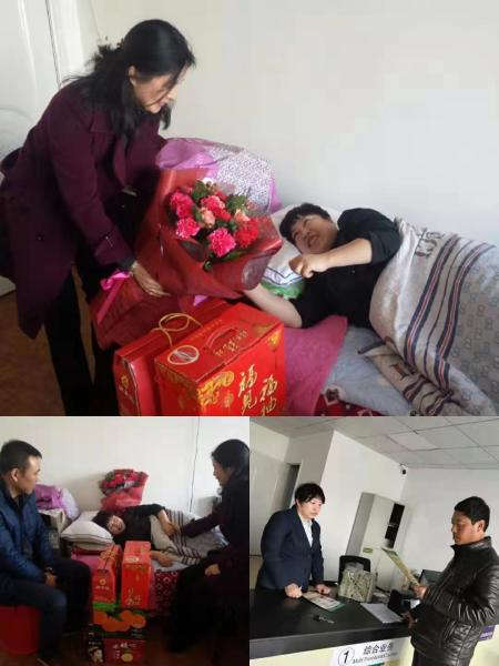 领导的到来让许立平一家非常高兴,对领导和同事们的关心和问候表示感谢,她激动地说:“我一定会尽快养好身体回到工作岗位上,再接再厉、再创佳绩,保证本年度明久支局能提档晋级”。