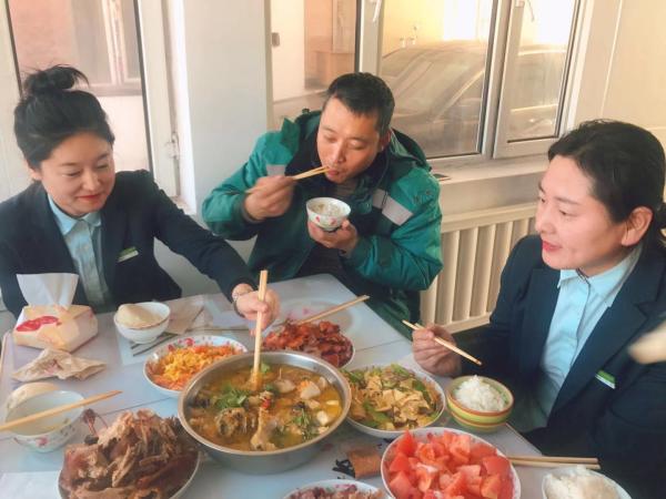 11月28日上午,集贤分公司工会主席田之勇携相关工作人员,带着为“小家”购买的床品、锅具、以及新鲜果蔬,分别来到丰乐和升昌两个支局,亲手为职工们做爱心午餐。大家其乐融融,满怀欣喜,一起庆祝“新家”的竣工。