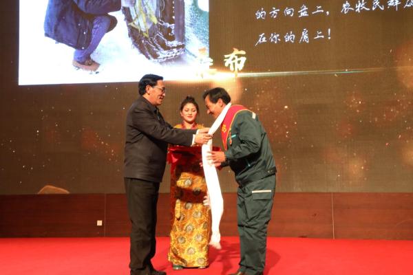 2019年12月20日晚8:00点,经自治区党委、政府批准,自治区总工会主办的2019年“西藏工匠”命名发布仪式在拉萨饭店吉祥厅举行。来自不同行业的8名优秀工程、医疗、民族手工艺和邮运战线人员荣获第三届“西藏工匠”称号,佩戴绶带,精神抖擞的就坐在会场的第一排,中国邮政集团公司阿里地区分公司长途邮运驾驶员桑布就是其中一员。