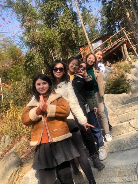 当天上午一路上,大家迎接着车窗透进来的丝丝阳光,欢声笑语不绝于耳。大约1个小时左右的车程,到达了梅岭太阳谷风景区。景区的小溪边、山坡上,成片的松树林、梅树林,在漫山遍野的毛竹林的映衬下,营造着天然氧吧的清新空气。随着山势与树林的变换,散落着几处具有江南风格的亭台和小桥。大家频频取景拍照,留下美景的瞬间,享受着这份工作之余的休闲时光。