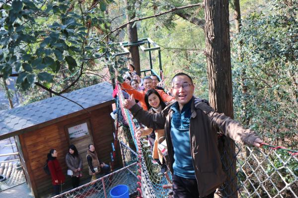 在温暖的阳光下,大家勇敢地参加了丛林穿越,穿梭在桥梁、网绳、人行道等障碍物中,通过攀援、跨越等方式,在树林里从一棵树运动到另一棵树。在拥抱绿色的同时,也考验了毅力与胆识。大家一路向前,终于登上“南昌之巅”,放眼望去,一片大好的风光尽收眼底,多彩的秋色已渐渐消退,素颜的初冬款款走来。