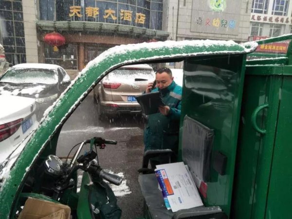 2月14日,面对恶劣天气,廊坊市分公司及时启动应急预案,确保邮路安全畅通。投递员冒雪走千家进万户,及时将每一件邮件送到用户手中。