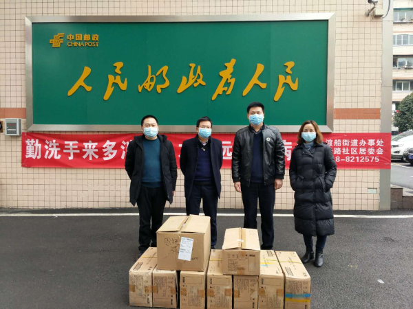 2月24日下午,邮储银行施州分行党委书记、行长张涛,副行长、工会主席吴静,工会副主席田永宪来到恩施州分公司,为恩施州分公司支援一批紧缺防疫物资,其中包含一次性防护口罩7000只、洗手液200瓶。恩施州分公司党委书记、总经理李茂山代表恩施州分公司接收了这批物资。