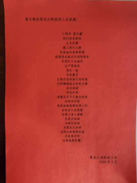 | 作者:黄天玉 | 来源:黑龙江省邮政工会 | 时间:2020-02-25 |