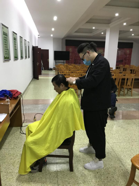 新冠病毒疫情爆发以来,广大干部职工夜以继日,奋战一线,由于任务繁重,加之受疫情影响,理发店也尚未营业,日渐浓密的头发成为了困扰一线干部职工的重大卫生问题。