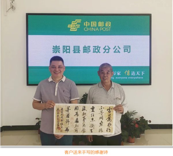 哪里有邮政,哪里就有邮政温度。邮政的网点延伸到哪里,邮政温度就在哪里暖心。两首诗的背后,是一次次微笑,一声声问候,一回回温暖的服务,这不仅是对雷勇骏的褒奖,更是对邮政优质服务的回馈。