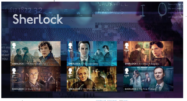 为纪念英国广播公司BBC出品的《神探夏洛克》开播十周年,英国皇家邮政于8月18日发行一套6枚的《神探夏洛克》电视剧版纪念邮票,同步发行一枚以柯南·道尔所著其他故事为内容的经典版小全张,内含4枚邮票。为了能让中国的夏洛克迷们一睹“卷福”、“花生”的风采,中国集邮网厅于20日开始预售《神探夏洛克》套票、小型张、邮折及收藏版张以飨剧迷,精彩不容错过!一起来欣赏一下吧。