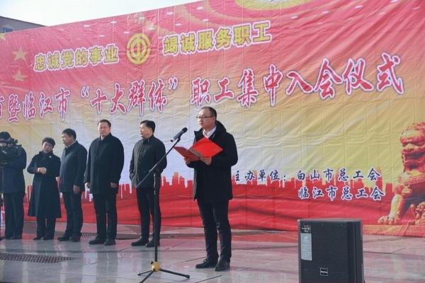 仪式上,白山市与临江市领导先后致辞,分别为“十大群体”工会会员发放了工会会员证及纪念品,并为职工代表赠送价值4万元的“职工互助保障金”。