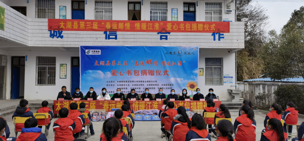 1月20日,太湖县分公司联合太湖县总工会、文明办等单位在太湖寺前镇罗溪小学开展了第三届“春运邮情 情暖江淮”爱心捐赠活动,为100余名贫困学生送去了爱心书包。