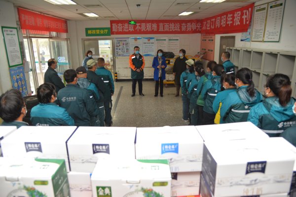 北苑支局由于所处地理位置靠近近期的疫情严控区,被隔离职工较多,对于“双十一”业务高峰期工作造成了一定困难,朝阳区分公司工会及时为一线职工准备了蔬菜生鲜、防寒围脖帽。王艳主席在得知此情况后,第一时间为职工们送来了食品,并不断向坚守岗位的职工们表示真挚的感谢与赞赏,嘱咐区分公司工会要及时向被隔离职工送去慰问品与关怀。