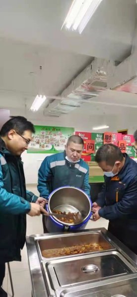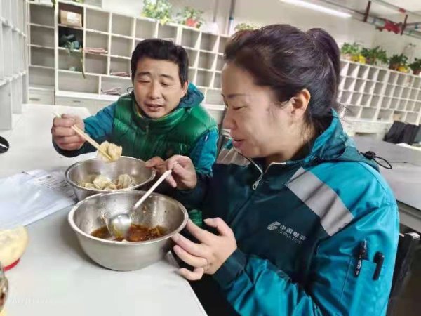 东城区分公司领导班子、部室主任一大早就拉上慰问品对奋战在一线的投递员工进行了慰问,工会为他们准备了饺子、肘子、炖肉、热汤。 从领导手中接过方便面、火腿肠、卤蛋、牛奶等慰问品,吃着热乎可口的炖肉和饺子,投递员们乐开了花,好像风雪寒冷都消失了,只感到浓浓的暖意。(北京邮政工会)