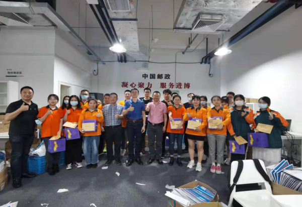 10月29日下午,区分公司党委副书记、副总经理沈飞华在工会工作人员的陪同下,带队赴进博证件寄递服务中心进行慰问活动,为全体在岗的每位员工送上慰问品及慰问信,对志愿加入证件寄递服务项目团队的员工送去区分公司党委的殷切关怀和慰问。