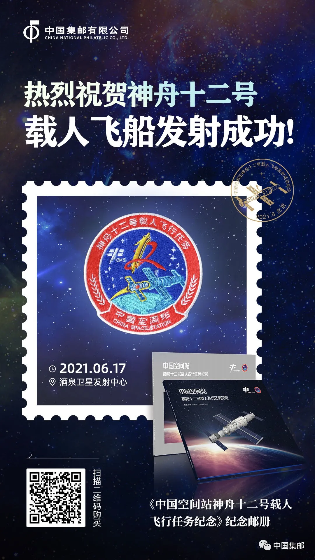 神舟再次飞天,它将在浩瀚太空谱写新的历程。收藏《中国空间站神舟十二号载人飞行任务纪念》系列邮品,可关注中国集邮有限公司京东旗舰店和各省中国集邮网点。
