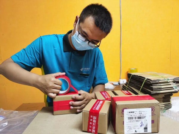 竹山抖音直播基地是十堰市绿松石发货集中地,入驻基地的绿松石直播商家超300家,每天交易量都在2000单以上。为了抢占市场份额,今年初,竹山县邮政分公司项目营销团队抢抓时机,坚持不懈上门走访推介,通过试寄体验等方式,成功进驻直播基地。同时,在基地设置收寄点,安排两名专职人员长期驻点,为商户提供包装箱、胶带等物料及打印面单、封装等服务。优质的服务也得到了商户的认可。截至目前,该直播基地市场份额从无到有,占比达15%,日均发货约300单,竹山分公司也提前44天完成特快业务“双过半”收入计划。