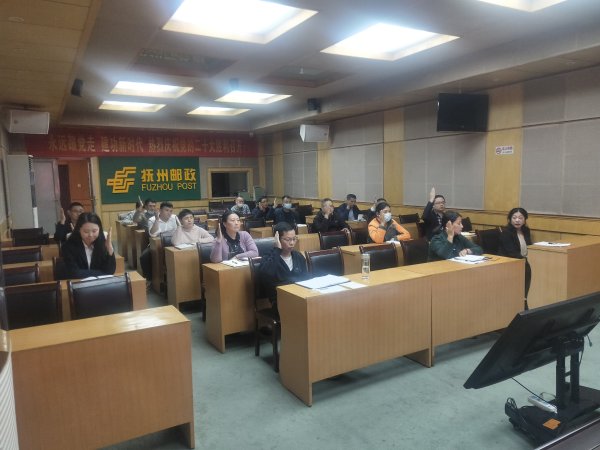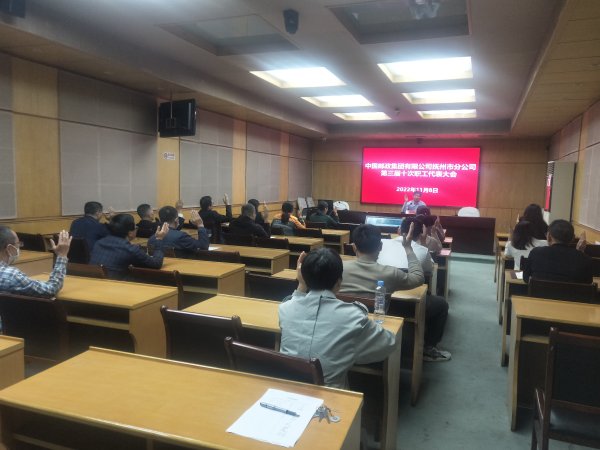 11月8日下午,江西省抚州市分公司召开第三届十次职工代表大会。会议应到代表59人,因病因事请假 3人,实到代表56 人,符合开会规定人数,市分公司党委委员、副总经理、工会主席李捷平主持会议。