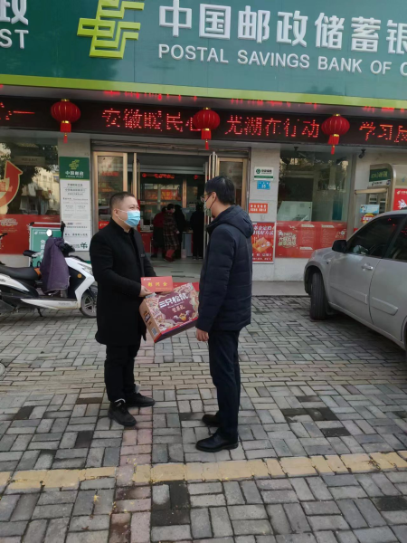 芜湖邮政城北投递部、城东普邮投递部在春节来临前夕开展爱心邮路新春送温暖活动,为帮扶对象朱麟洁、王跃南、王承勇送上水果和牛奶等慰问品,希望他们能过上一个愉快的新春佳节。